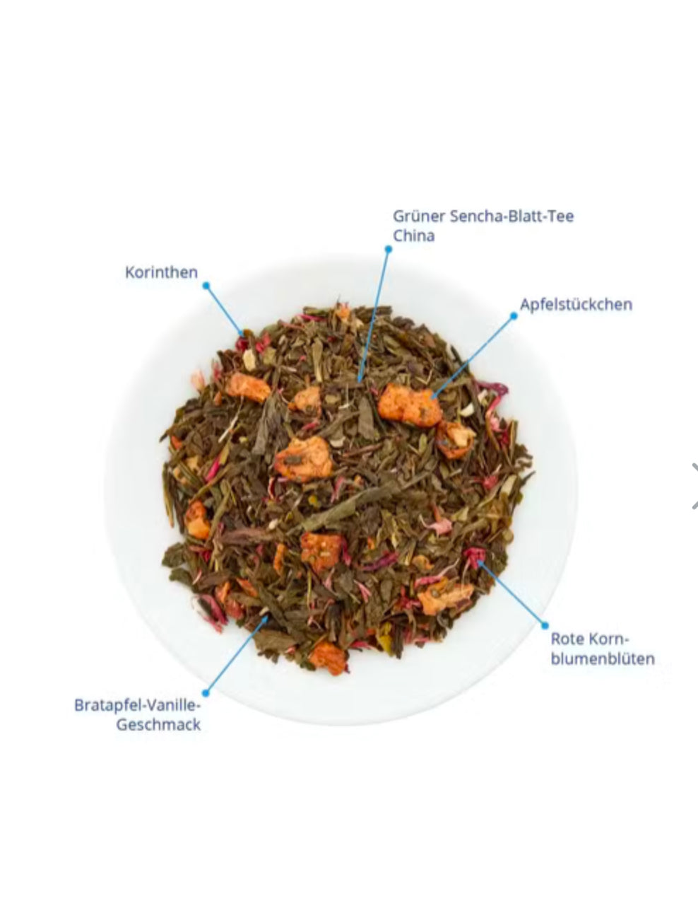 Aromatisierte Mischung aus Grünem Tee und Apfel mit Bratapfel-Vanille-Geschmack