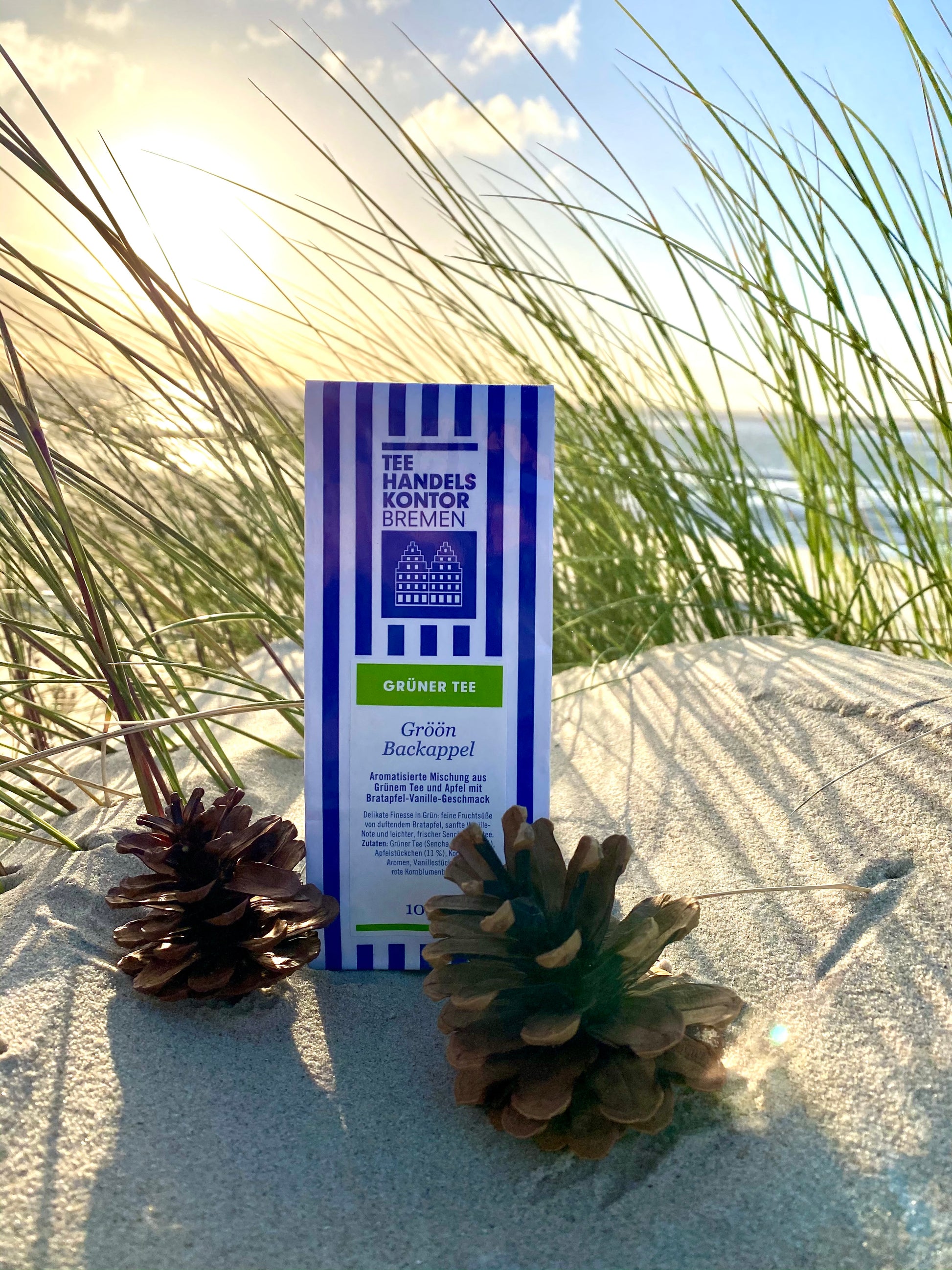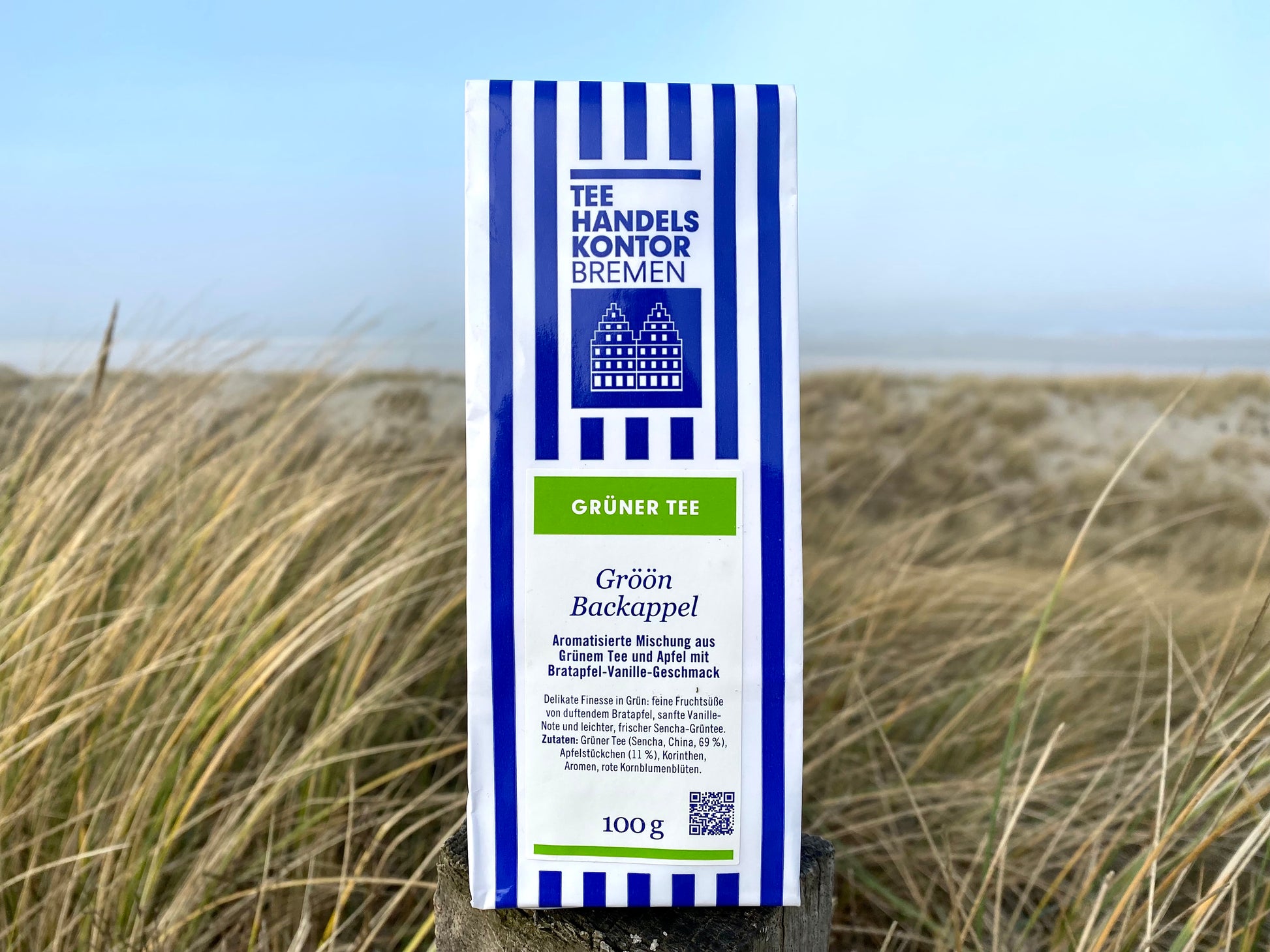 Delikate Finesse in Grün: feine Fruchtsüße von duftendem Bratapfel, sanfte Vanille-Note und leichter, frischer Sencha-Grüntee.