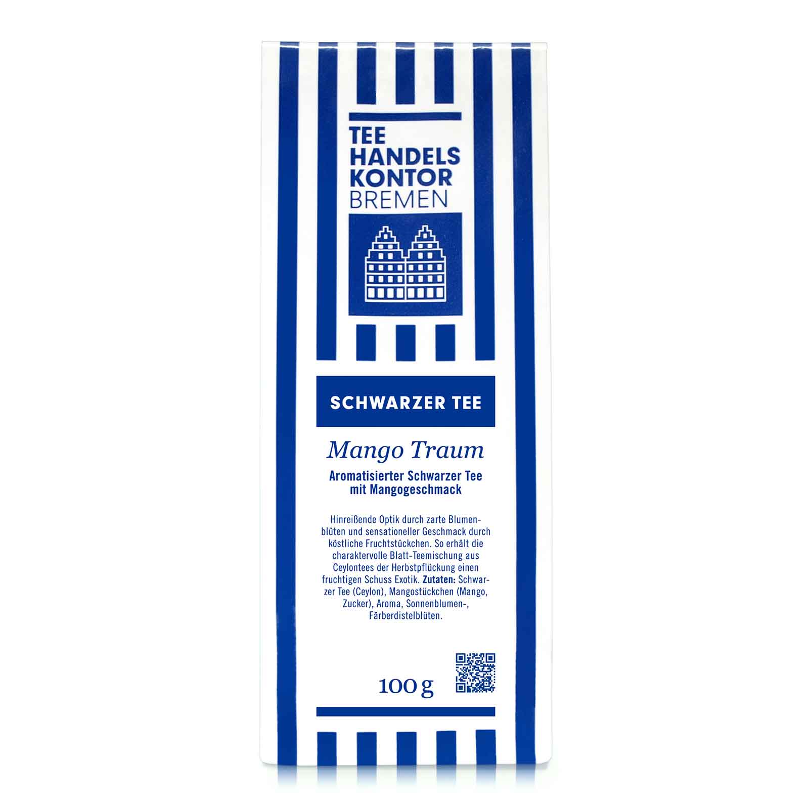 In diesem Tee kommt zusammen, was einfach zusammengehört: im Herbst geernteter, Schwarzer Blatt-Tee aus Ceylon und die ursprünglich in Indien beheimatete Mango mit ihrem ausgeprägt weichen, exotischen Fruchtgeschmack. Das bringt vollfruchtige Mangosüße in die klassisch dunkelbraune Tasse. Freuen Sie sich auf eine ansprechende Teekomposition aus sortentypisch rötlich-dunkelbraunen Teeblättern, leuchtend bunten Blütenblättchen und großen Mangostückchen.